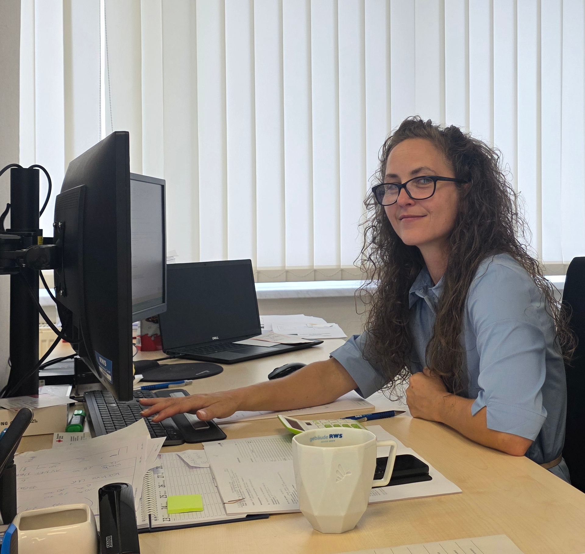 Jeanette Ehrt sitzt an ihrem Schreibtisch in ihrem Büro in Halle a. d. Saale